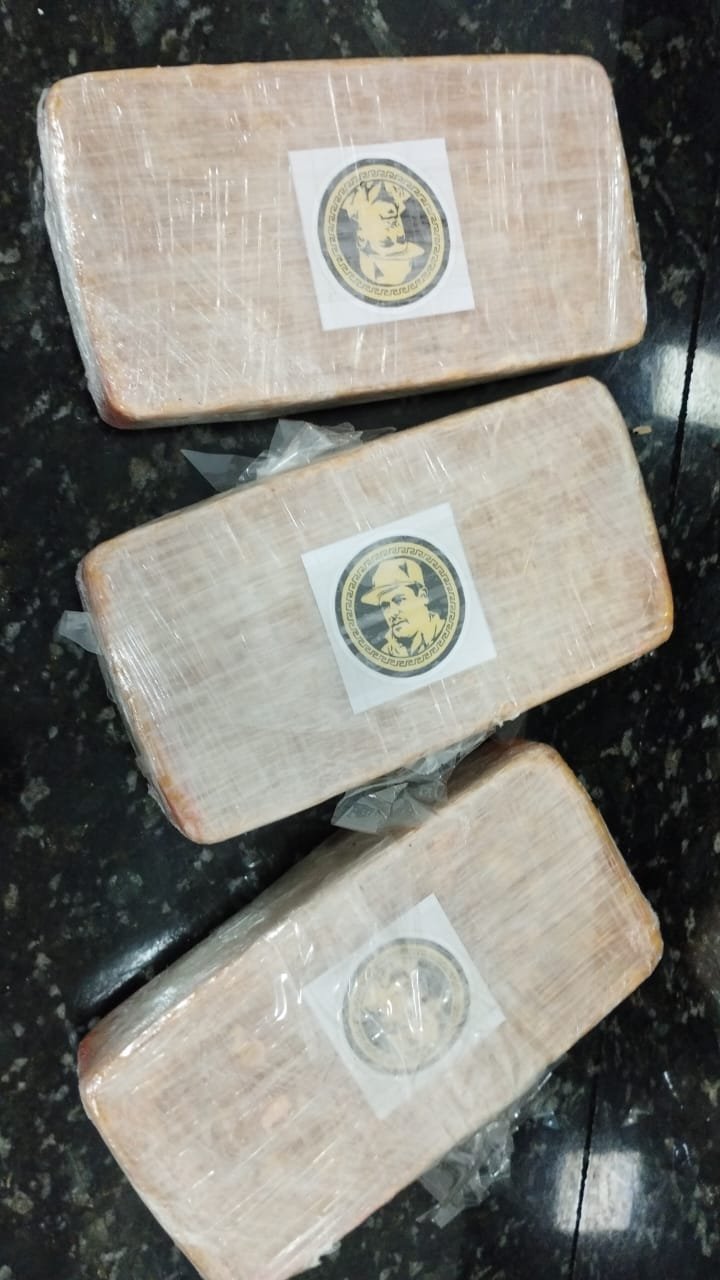 Durante os procedimentos de abordagem e verificação da bagagem, os policiais localizaram aproximadamente 3 quilos de pasta base de cocaína ocultos no interior de um eletrodoméstico que estava sendo transportado pela presa.